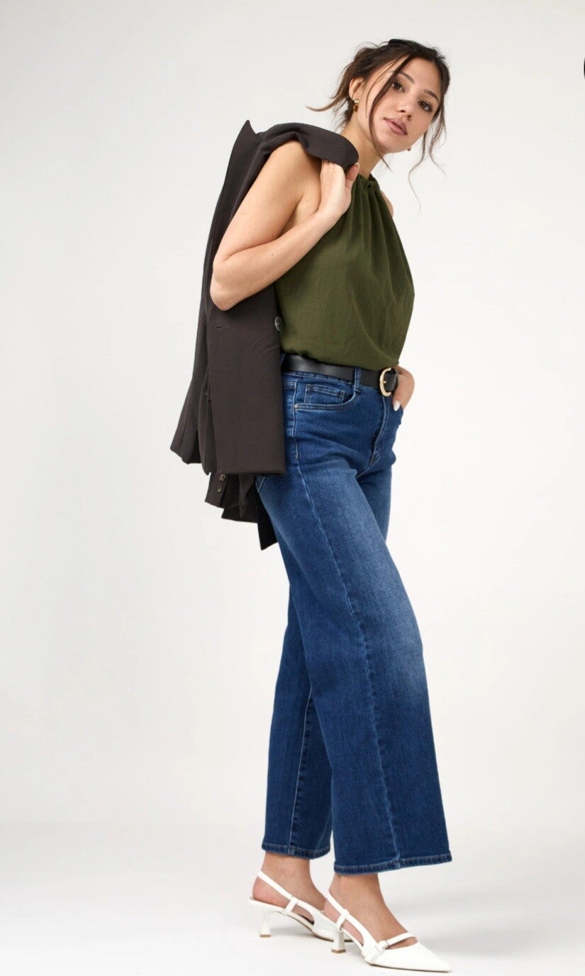Le culotte pants “Millie” revisite l’élégance estivale à travers une coupe wide structurée et une longueur raccourcie, signature du culotte pants. Sa taille haute met en valeur la silhouette tandis que la jambe large offre une allure contemporaine et affirmée. La ceinture intégrée, soulignée par une boucle dorée, apporte une touche raffinée d’inspiration tailoring. Confectionné dans une matière souple et agréable à porter, Edena conjugue confort et style pour accompagner la saison avec aisance.